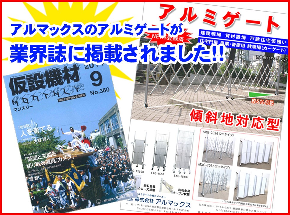 <EXG2040N(J) W4.5m×H2.0m>アルマックス アルミゲート (社)仮設工業会月刊誌に掲載 【西濃運輸】