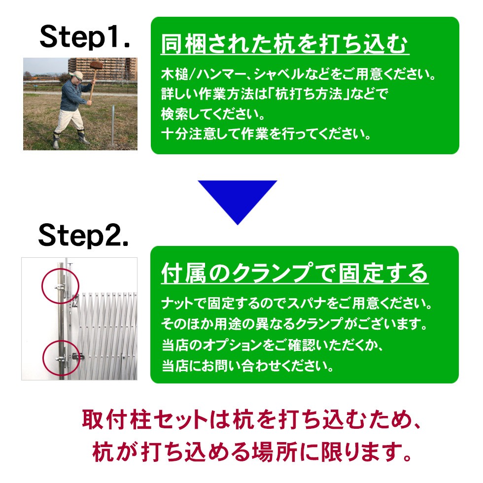<PXG1260 取付柱用の杭2本付き 48.6×2,000mm×2本>W6.2m×H1.50m【西濃運輸】